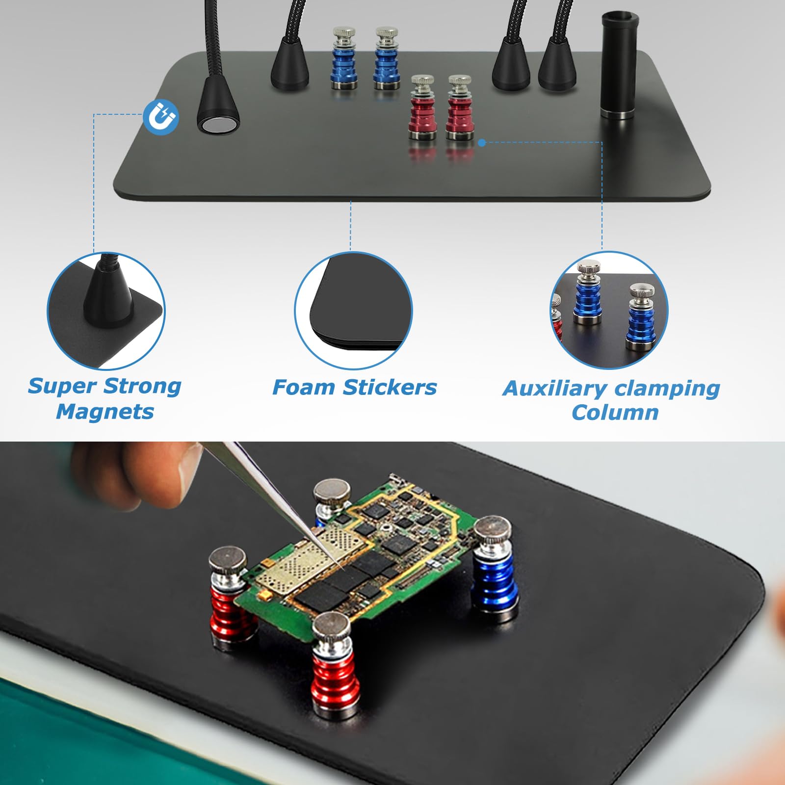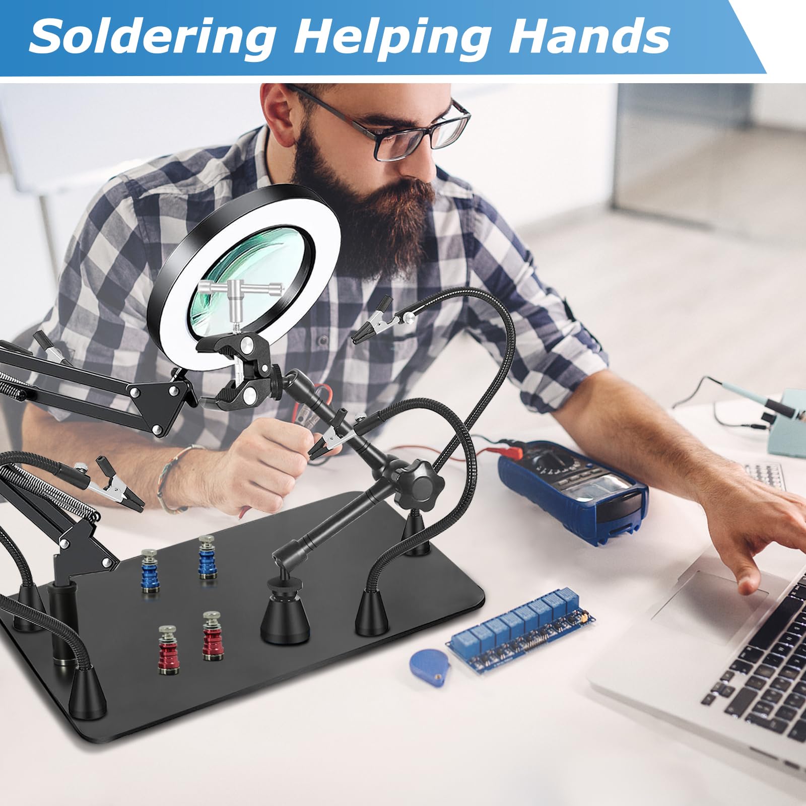 Magnetic Helping Hands Soldering Station, 10X LED Magnifying Lamp Large Soldering Station Kit, 360 Hot Air Gun Holder, 4 Magnetic Third Hand Soldering Tool & PCB Holder for Electronic Repair Soldering