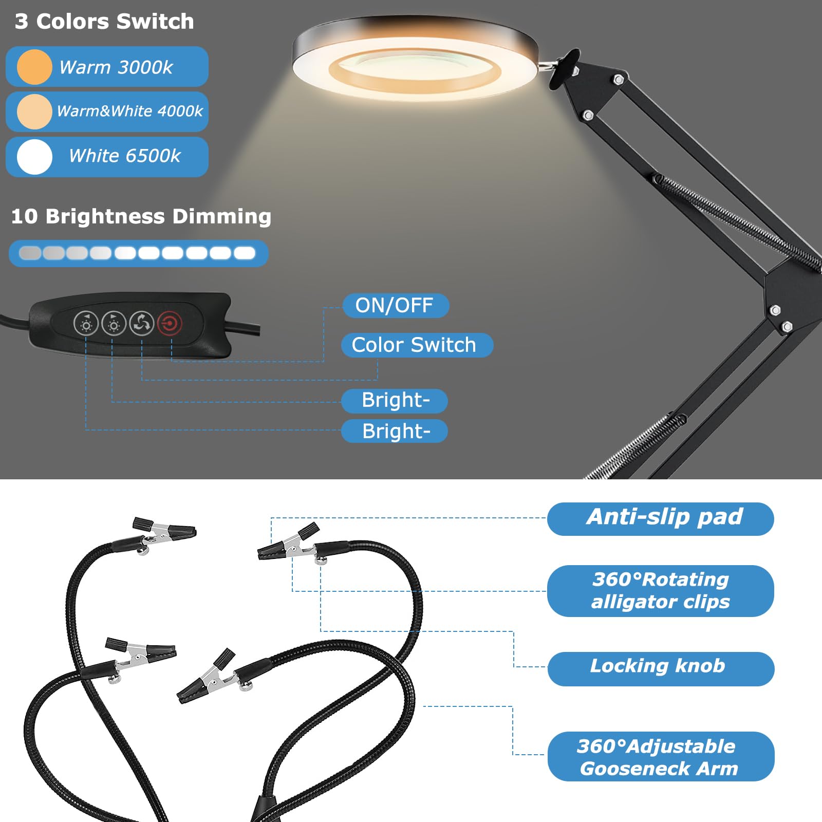 - 【10X Real Glass Magnifying Lens】The newly upgraded 10x HD 4.3 inch real glass provides clear magnification and restores real objects. It is specially designed for people who need close work, continuous work for a long time or visual assistance. Be able to work more efficiently, easily read/view small words, repair, sculpture, manicure, sewing, design, etc.