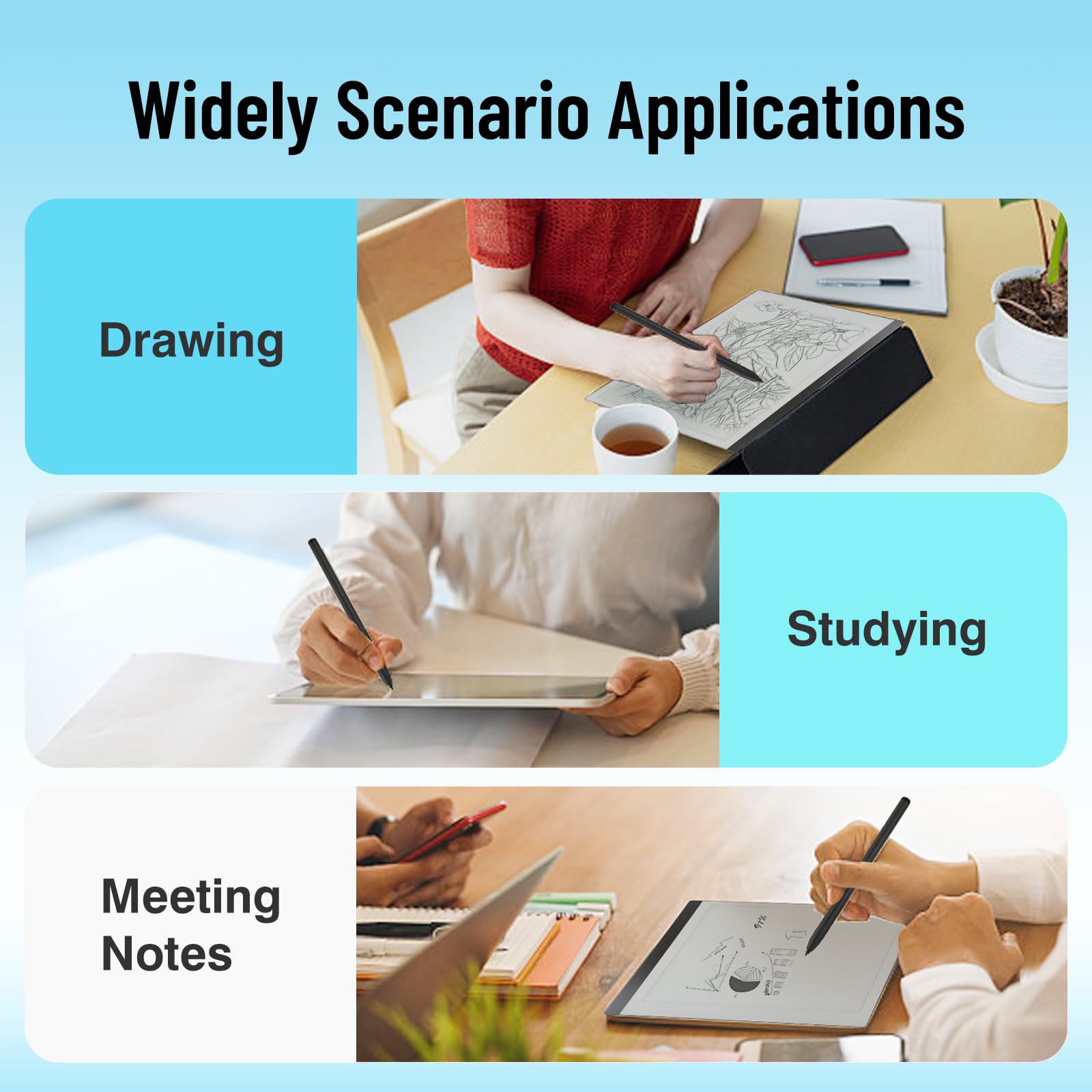 - 【Palm Rejedction & Tilt Support】Our EMR pen for remarkable 2 stylus alternative allows you to rest your hand on the screen of your laptop, you can sketch and write from all-directions, which does not obstruct your vision, enhances writing precision in writing and drawing.