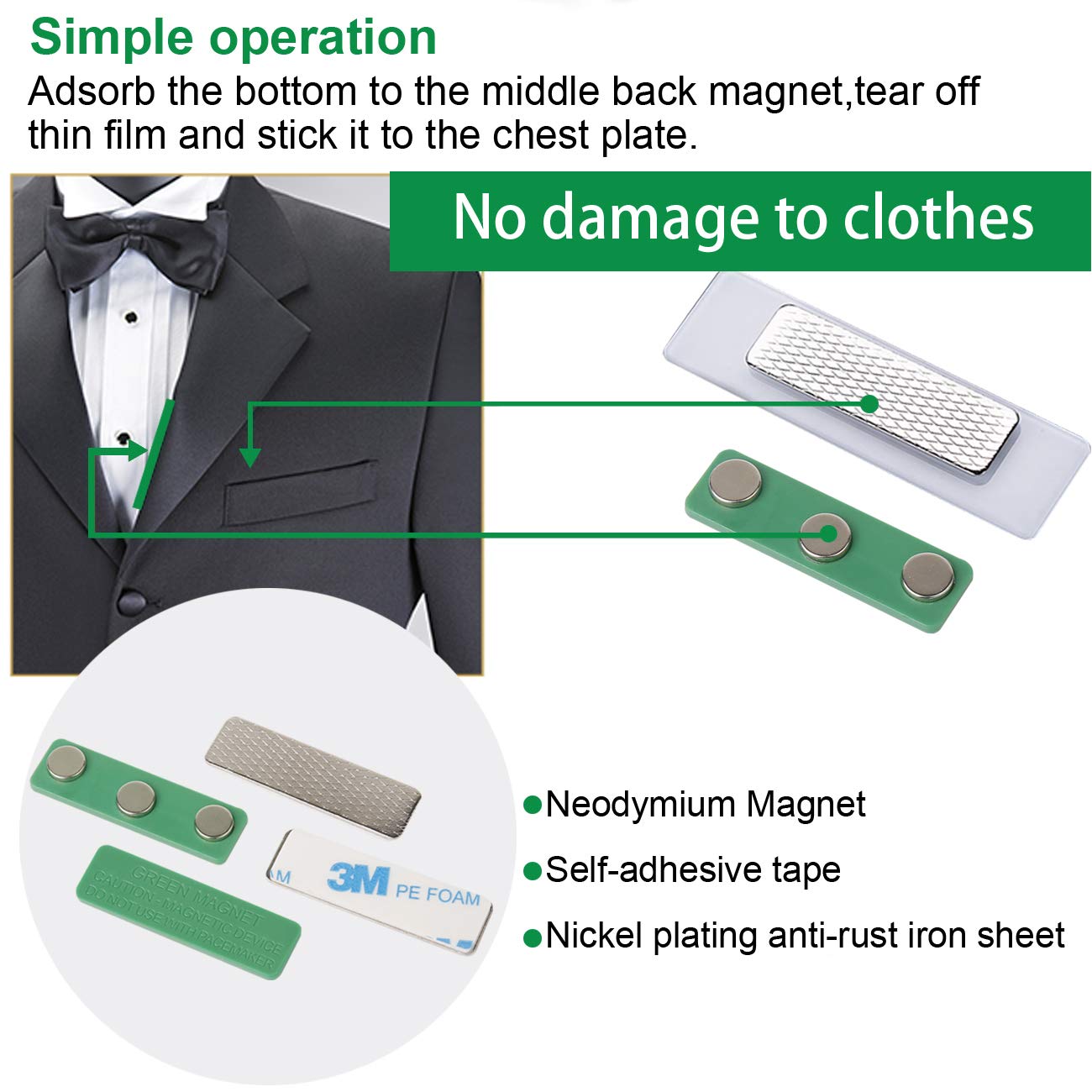 Magreen Magnets 120 Pack Strong Magnetic Name Badge Holders with Steel Back Plate, Name Tags/ID Badge Magnets, Fastener with 3M Adhesive on Front Plate,Strength Neodymium Magnets