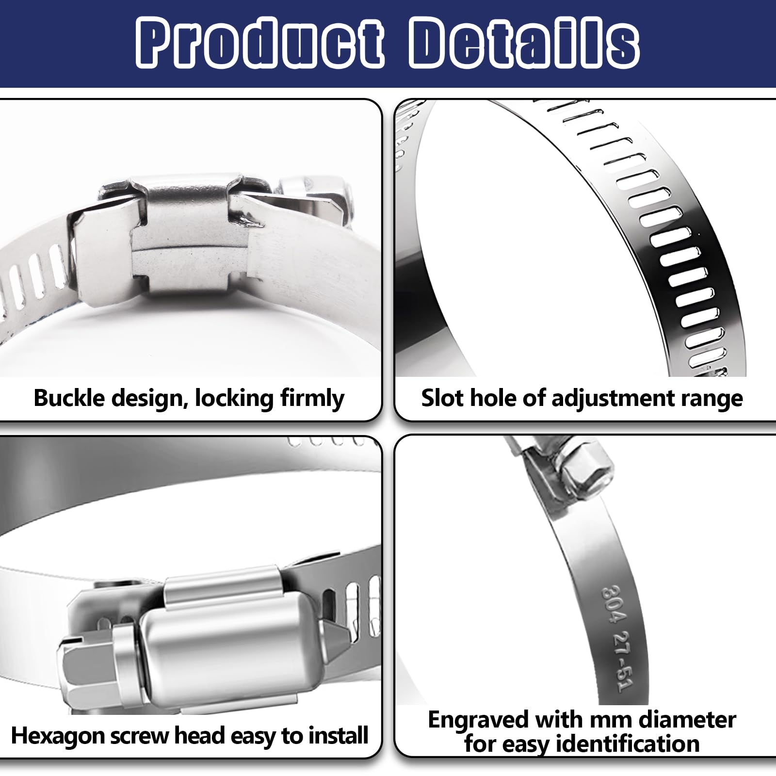 - Easy to Use: Just use a screwdriver to tighten or loosen the screw of the hose clamp, then adjust it to your desired size and fasten the hose clamp in place.