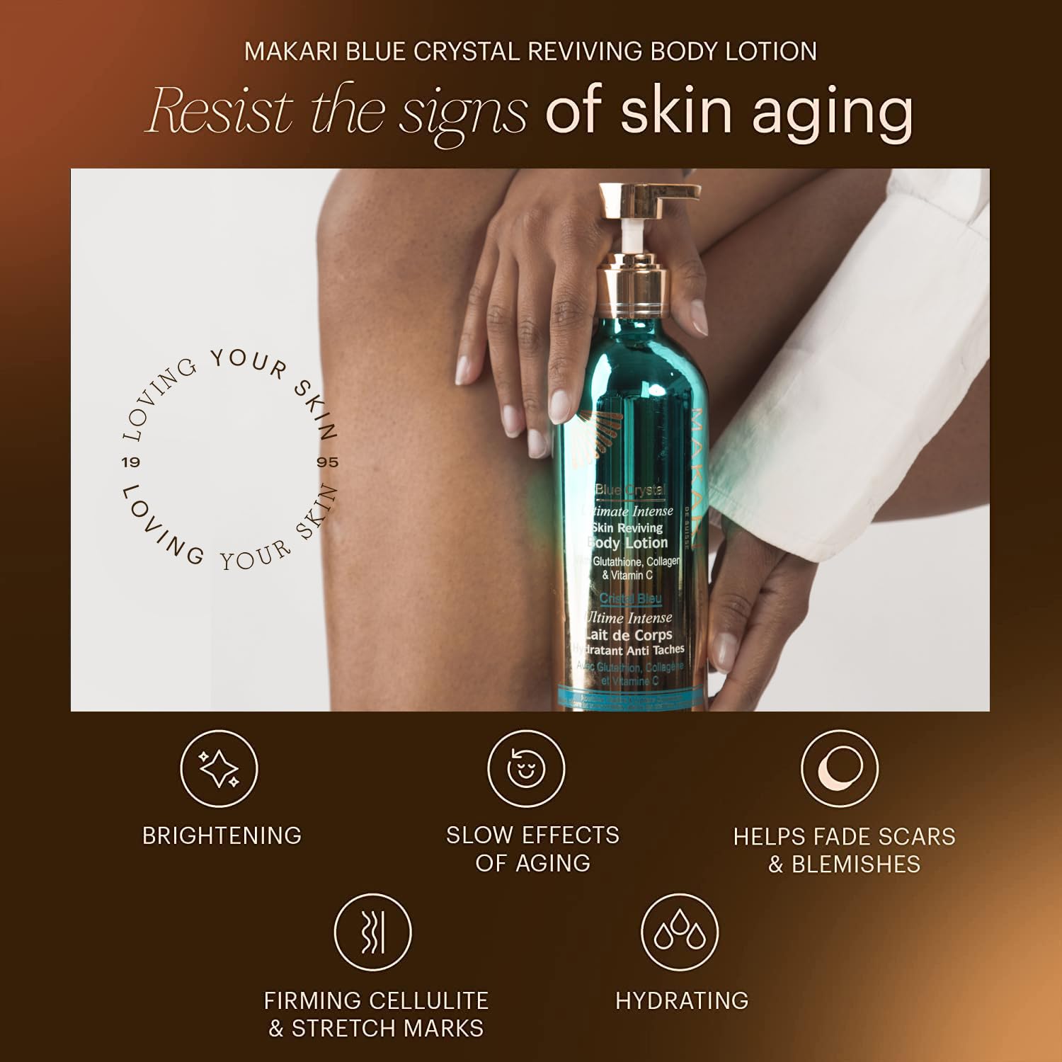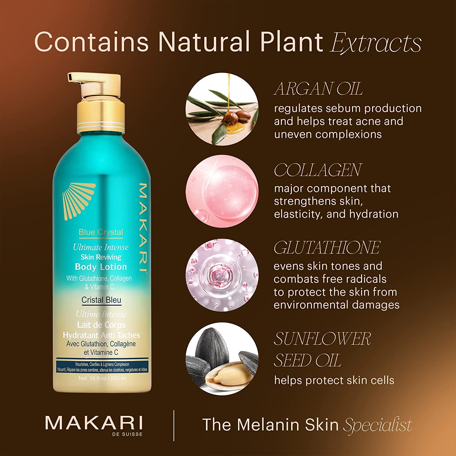 Details: Makari Ultimate Intense Blue Crystal Skin Care Duo: Body Lotion (16.8 oz) & Face Moisturizer (50 ml) | Glutathione & Collagen-Enriched for Hydrating, Revitalizing Skin | Ideal for All Skin Types