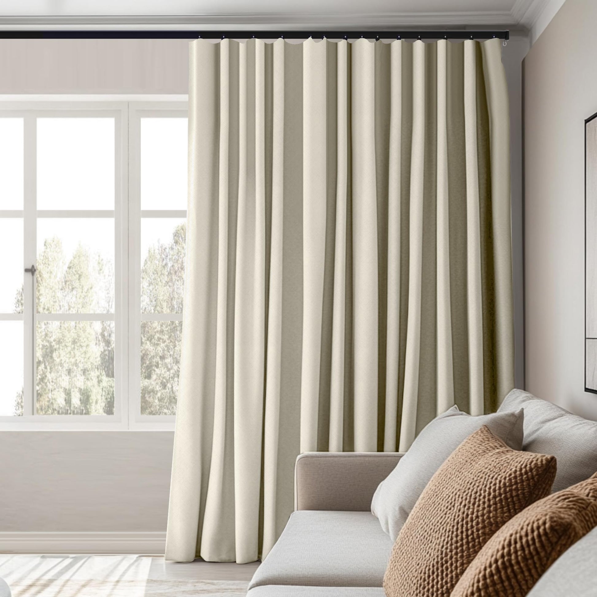 MaKefeile Room Divider Curtains Total Blackout Privacy Curtain Panel Room Thermal Insulated Noise Reduction Curtain for Bedroom Window Living Room Ceiling Track Curtain W 15ft × H 8ft Beige.