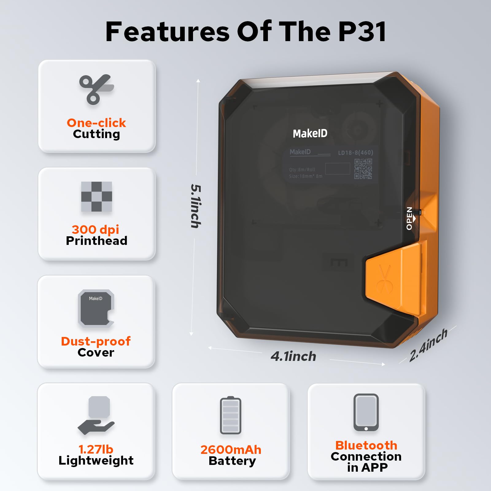 - Power-Packed Performance - The P31 label printer is equipped with a 2600mAh battery for up to 90 days of use on a single charge. It can print up to 60 labels per minute, saving printing time.