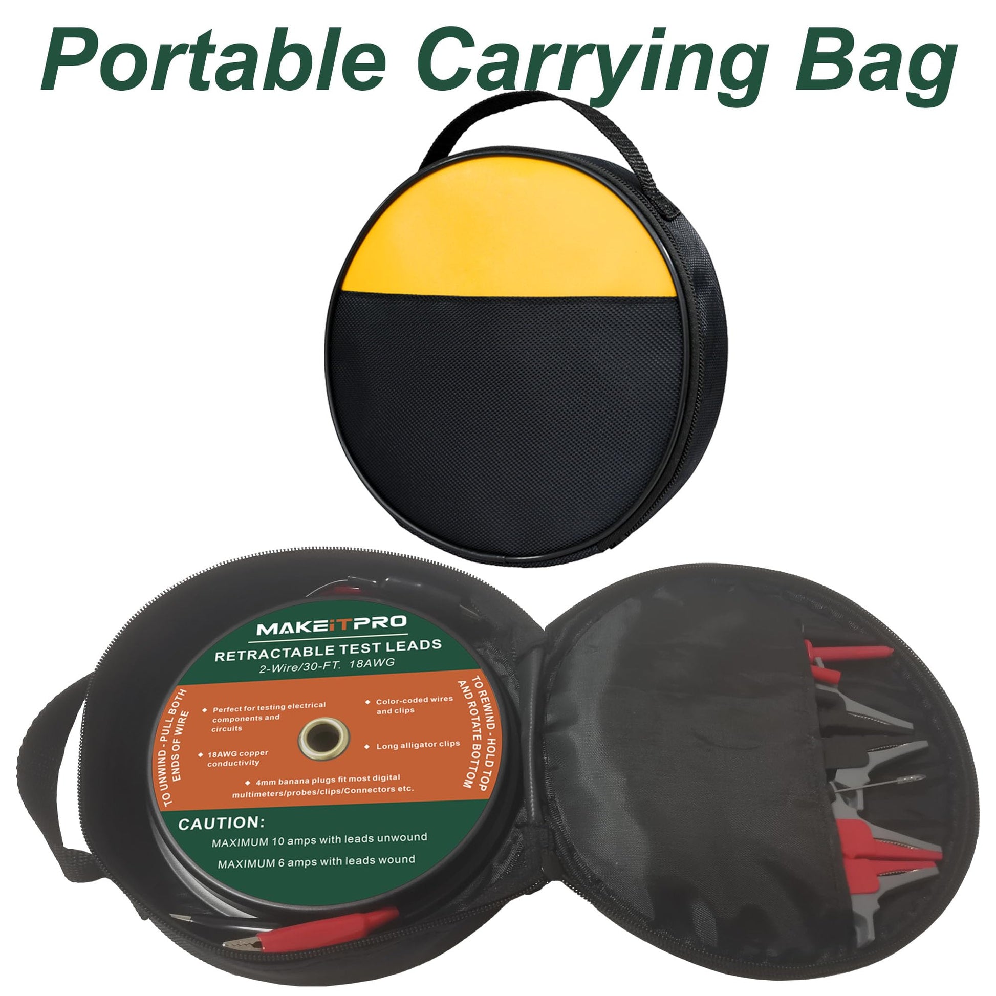 MAKEITPRO 2 Wires 30FT 18AWG Retractable Test Leads with Cable Bag and Dual Ended Electrical Alligator Clips Test Probe Lead Wire Cables for Circuit Connection/Electrical Testing and Troubleshooting