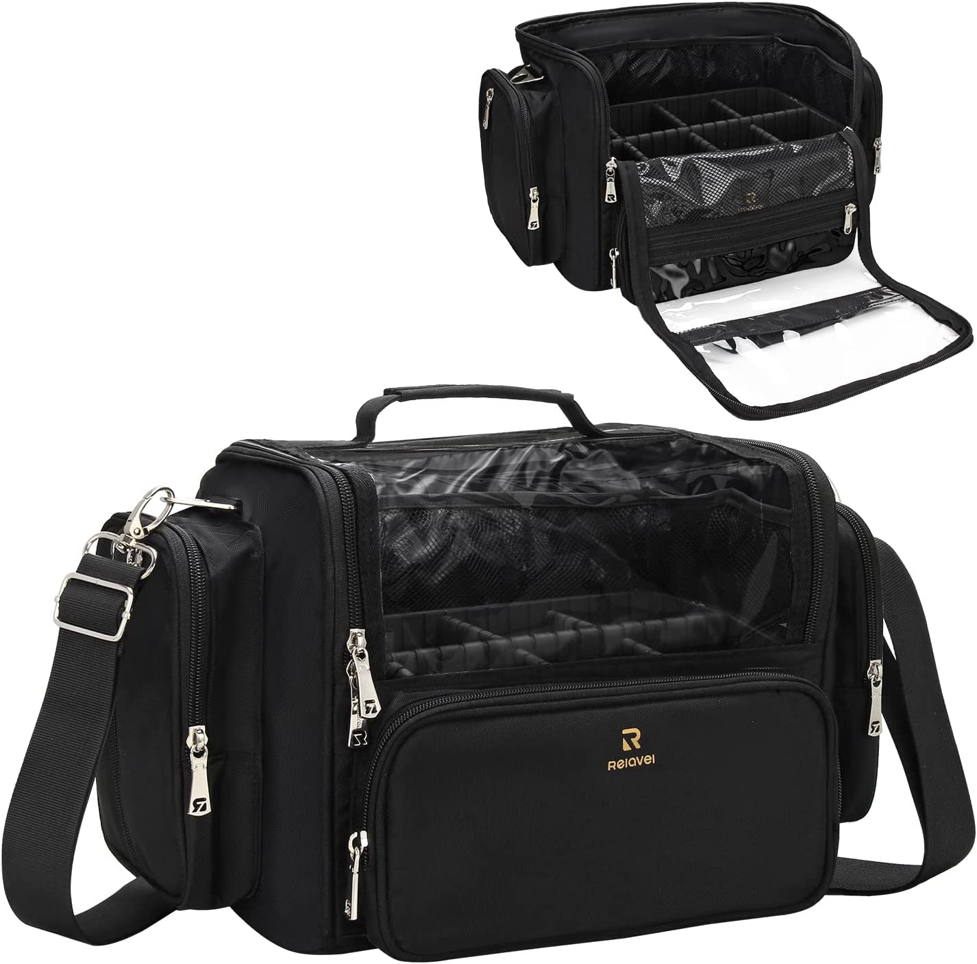 - Large Capacity & Adjustable : This makeup brush travel case is extra large. Adjustable dividers and separately pockets can well organize women cosmetics makeup essentials, make up brush traveling case pro makeup artist must haves for traveling