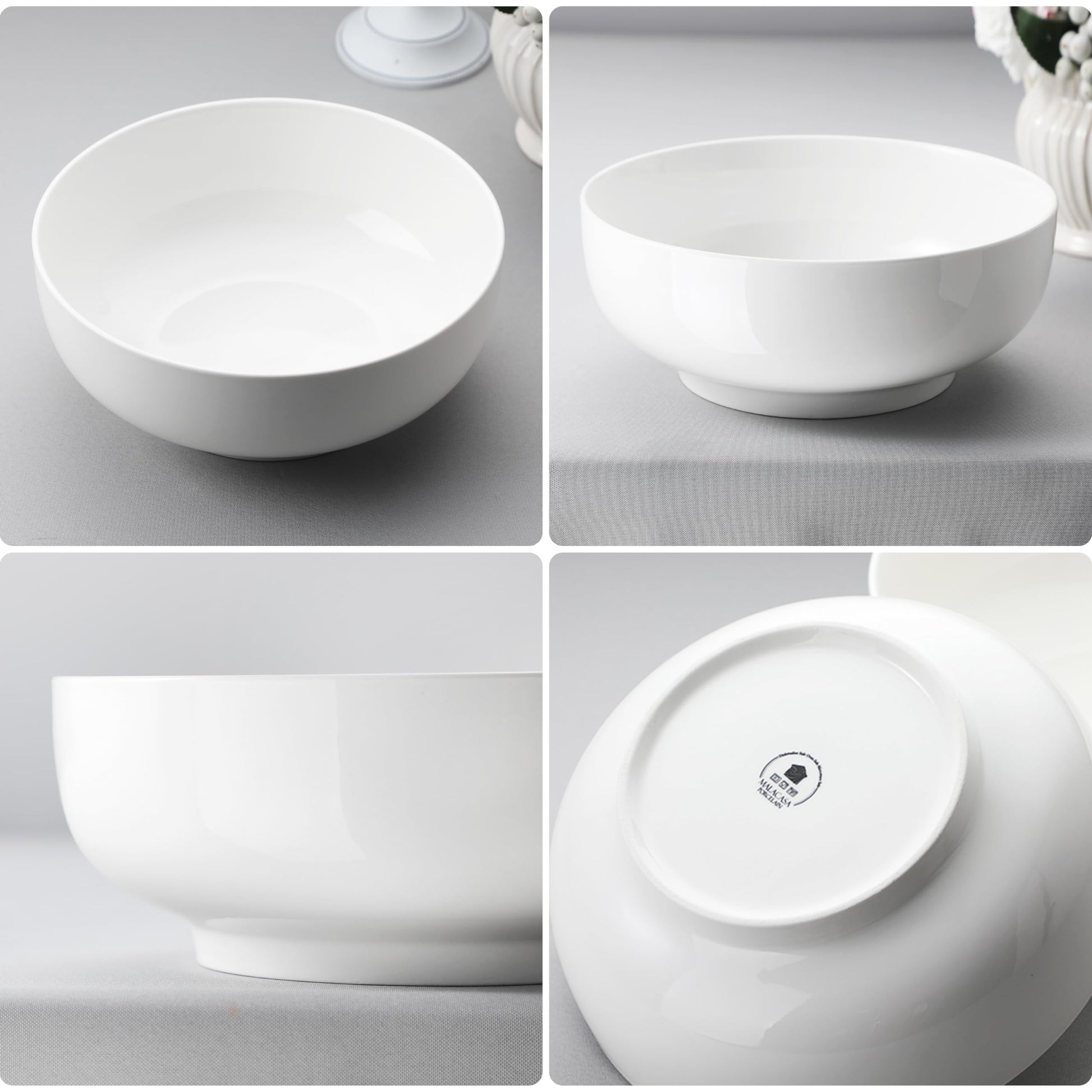 - 【EFFORTLESS CLEANUP & SPACE-SAVING】MALACASA porcelain salad bowls are all are made of high temperature firing, smooth surface can prevent food residue and scratch resistant for effective cleaning. The classic round shape can not only be used as a decorative item in the home, but also can be conveniently stored away to save space