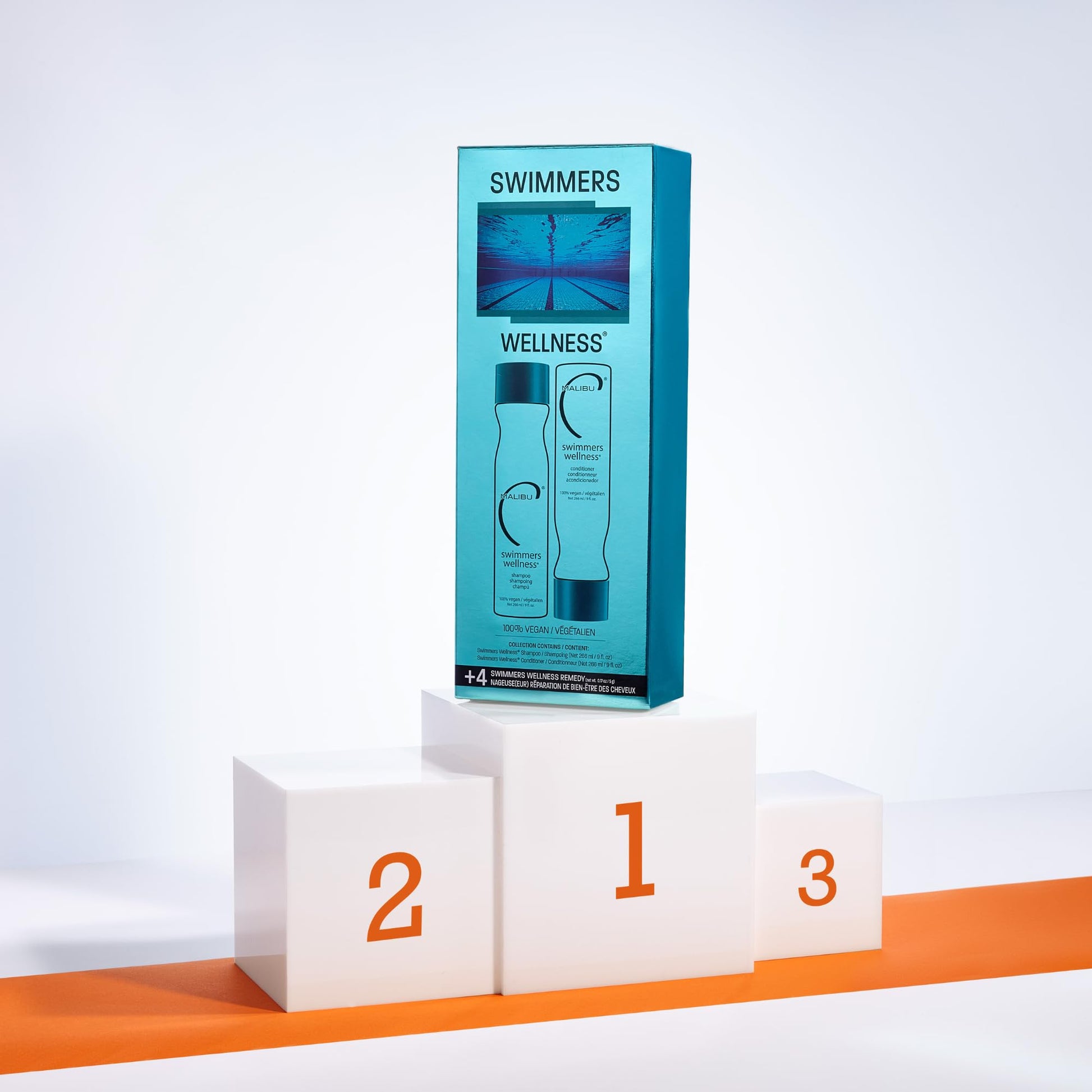 Malibu C Swimmers Wellness Collection - Swimmers Shampoo and Conditioner Set + Hair Mask Packets - Moisturizing, Shine Restoring Hair Care Kit - Protects Hair Discoloration from Pool Elements (6 Ct)