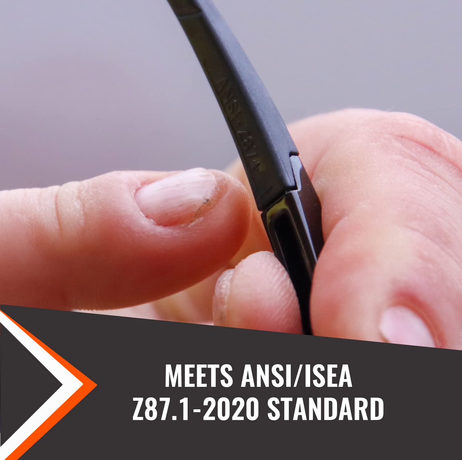 - SECURE & COMFORTABLE FIT: To ensure a safe and secure fit, these ANSI Z87.1 safety glasses have a universal fit nose bridge design, flexible temple tips to resist slipping, and curved lenses that contour eye shape.