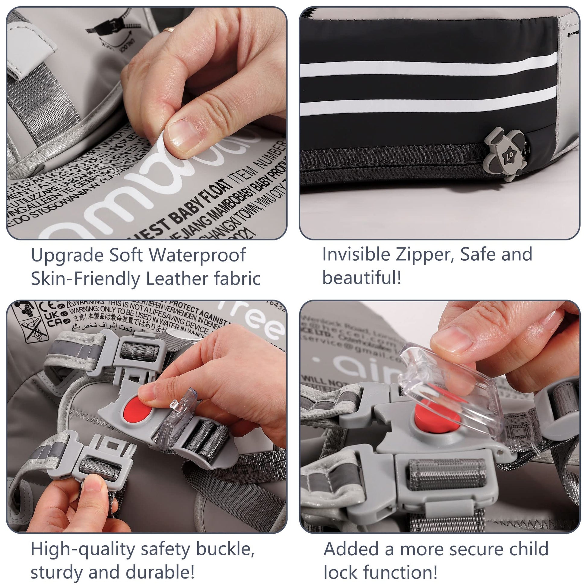- 360° Full Protection: Features Latest tech pearl foam, our mambobaby float with canopy prevent air leakage, never flip over. Add removable tail, prevent baby from flipping backward. Upgraded safety buckle provides 5 support points and perfect 40°angle to keep a good balance.