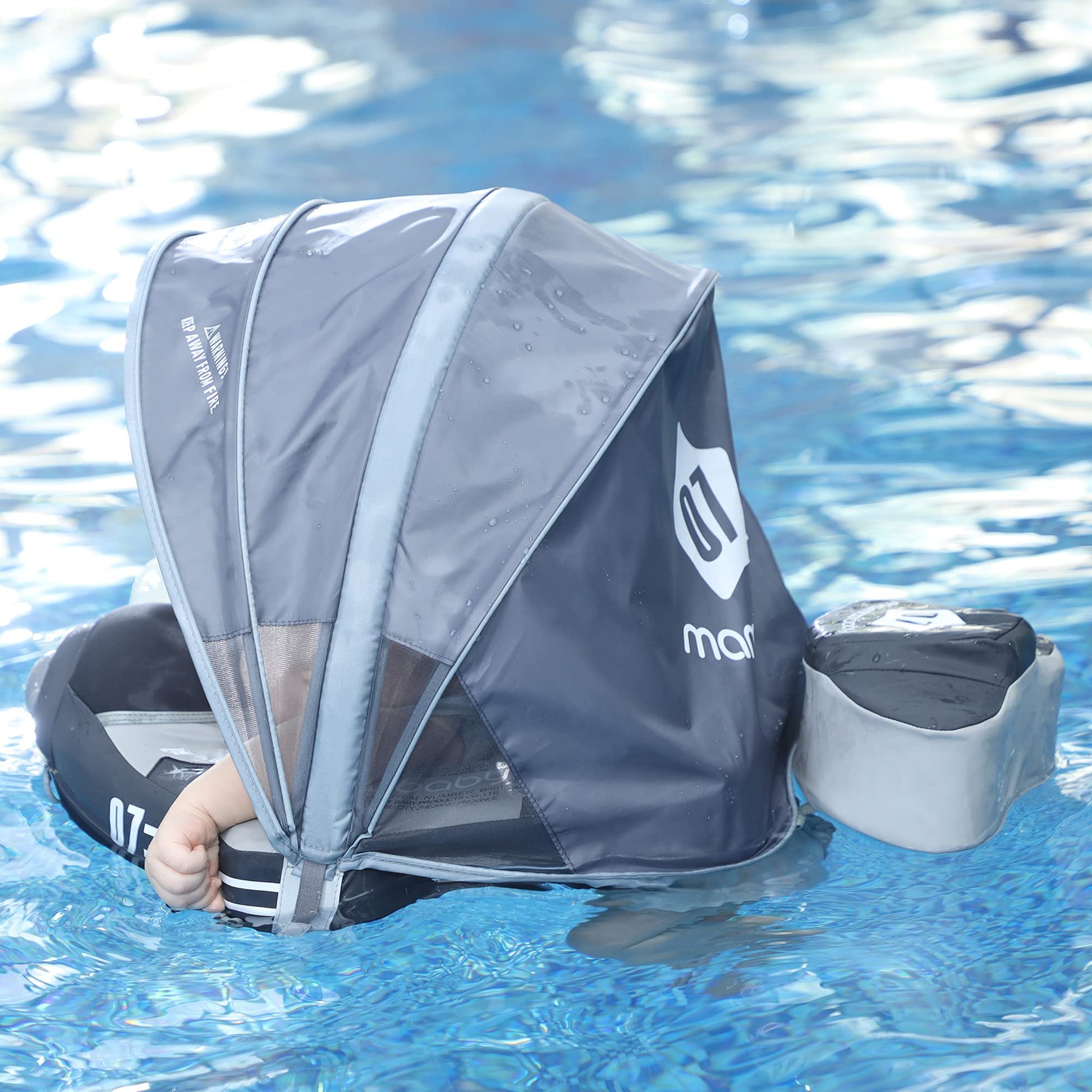 - Baby Floats with Sun-Proof Canopy: Keep Your Baby Safe from the Sun with UPF50+ Protection. Our Mambobaby pool float features a detachable canopy that offers versatile shade options to protect your baby from every angle, keeps their delicate skin safe from harmful UV rays.