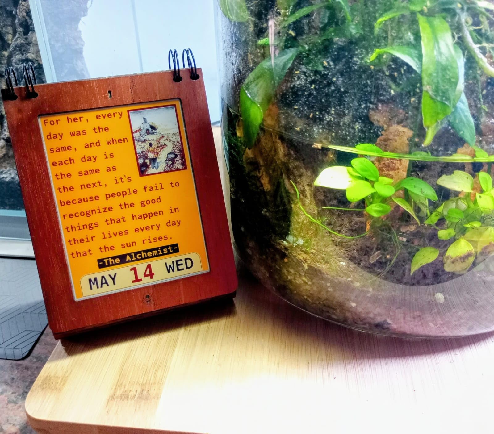 - First-of-its-kind – Smart desk calendar that automatically shows you new inspirational quotes every few hours.