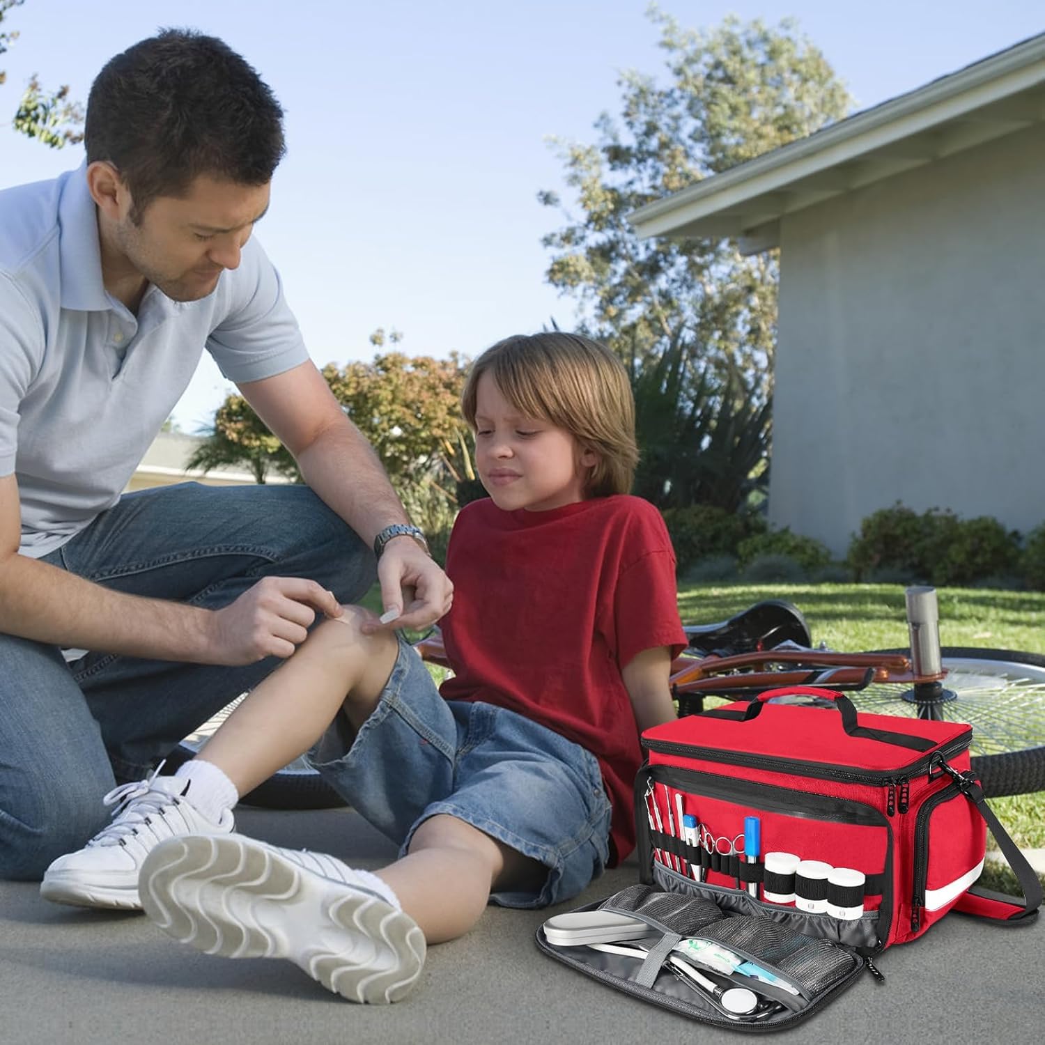 Mancro Medical Bags, Large Medication Storage Empty, Water Resistant Pill Bottle Organizer for Home, First Aid Responder Bag, Nurse Gifts, Red Medical Supply Organizer