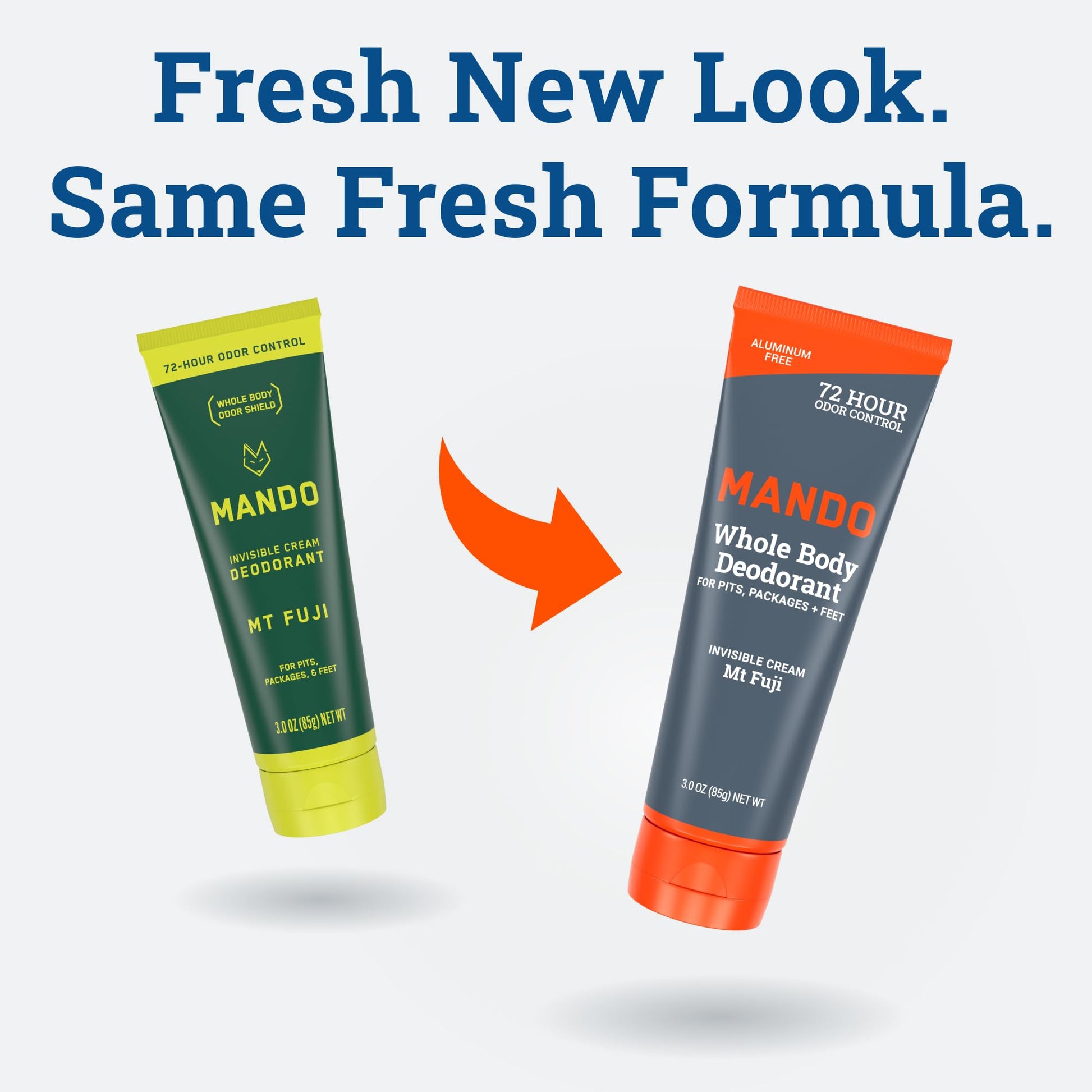 Mando Whole Body Deodorant - Invisible Cream Tube and Solid Stick - 72 Hour Odor Control - Aluminum Free, Baking Soda Free, Skin Safe - 3.0 Ounce Tube and 2.6 Ounce Solid Stick Bundle - Mt Fuji