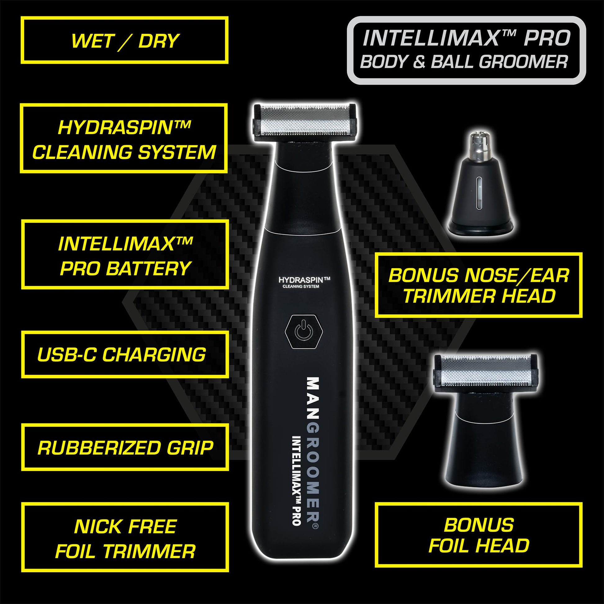 MANGROOMER INTELLIMAX PRO Body and Ball Groomer, Groin Trimmer for Men, Electric Ball Trimmer, Pubic Shaver, with Free Bonus Foil Included and Free Nose Trimmer Replacement Head