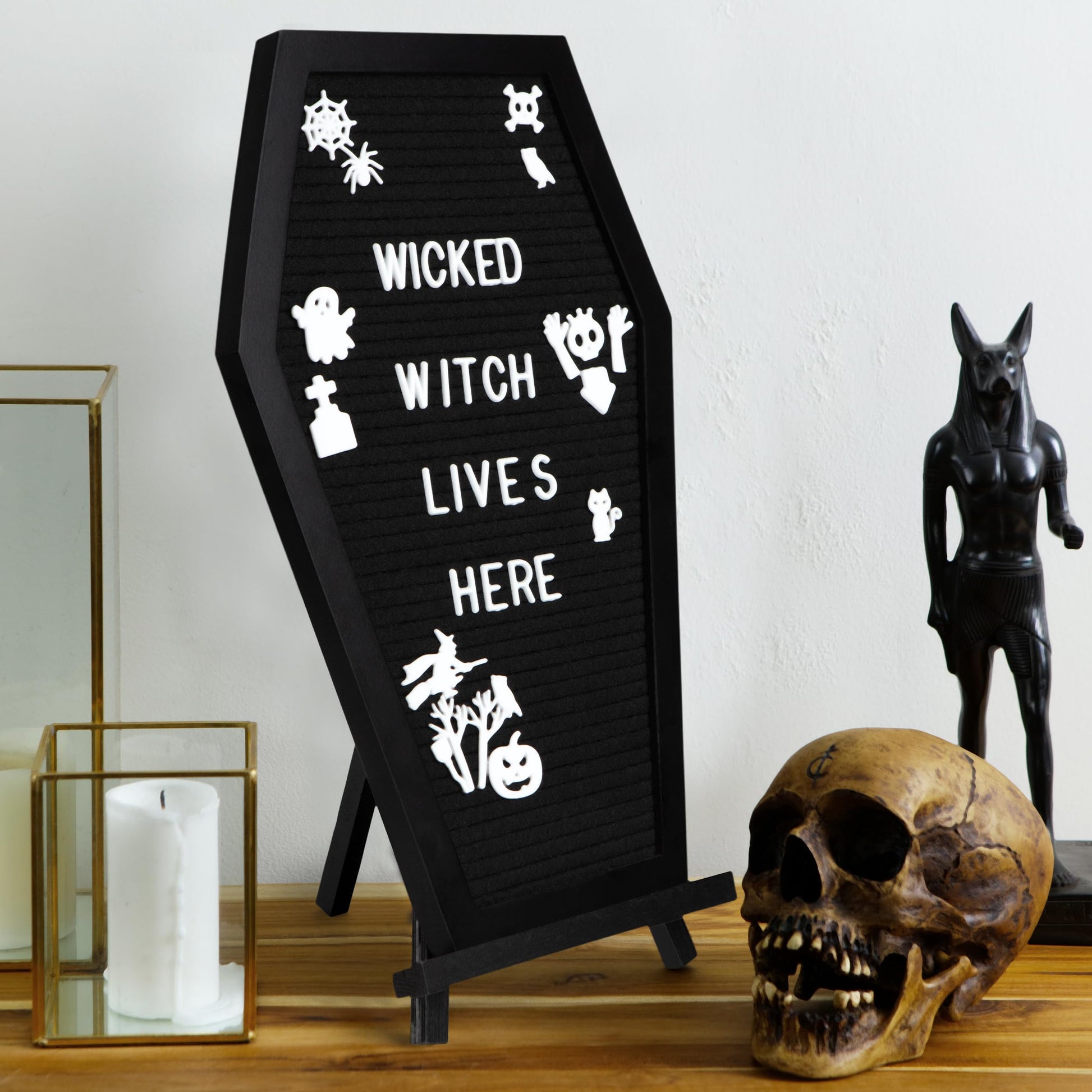 - If you are spicing up your gothic party decor with a coffin shelf or coffin mirror, coffin pin board, or any other macabre decor, use the letter board to round out your gothic halloween decor.