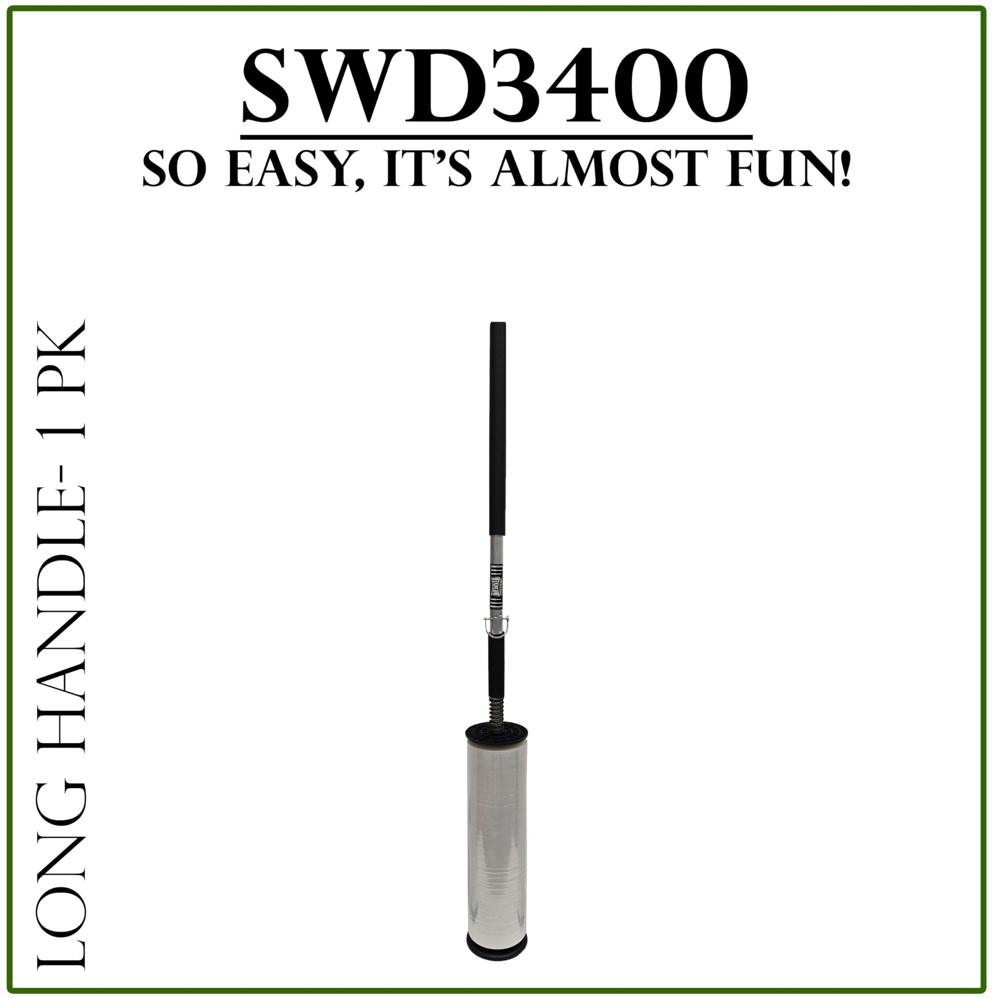 Details: The longer handle provides more hand separation to increase leverage and reduce fatigue. When you are wrapping more than 5 pallets a day, you will experience the best results with the SWD3400. Set down your MANPLOW where you want, not where you can. All models feature the StandUp Base that allows your MANPLOW to be set down on any flat surface and remain up right. The StandUp Base also offers a lower profile so it can wrap less than an inch from the floor; securing your freight more securely to the pallet. Remember the MANPLOW Promise; Wrap the Bottom, Middle and Top without walking backwards, bending over or over reaching.