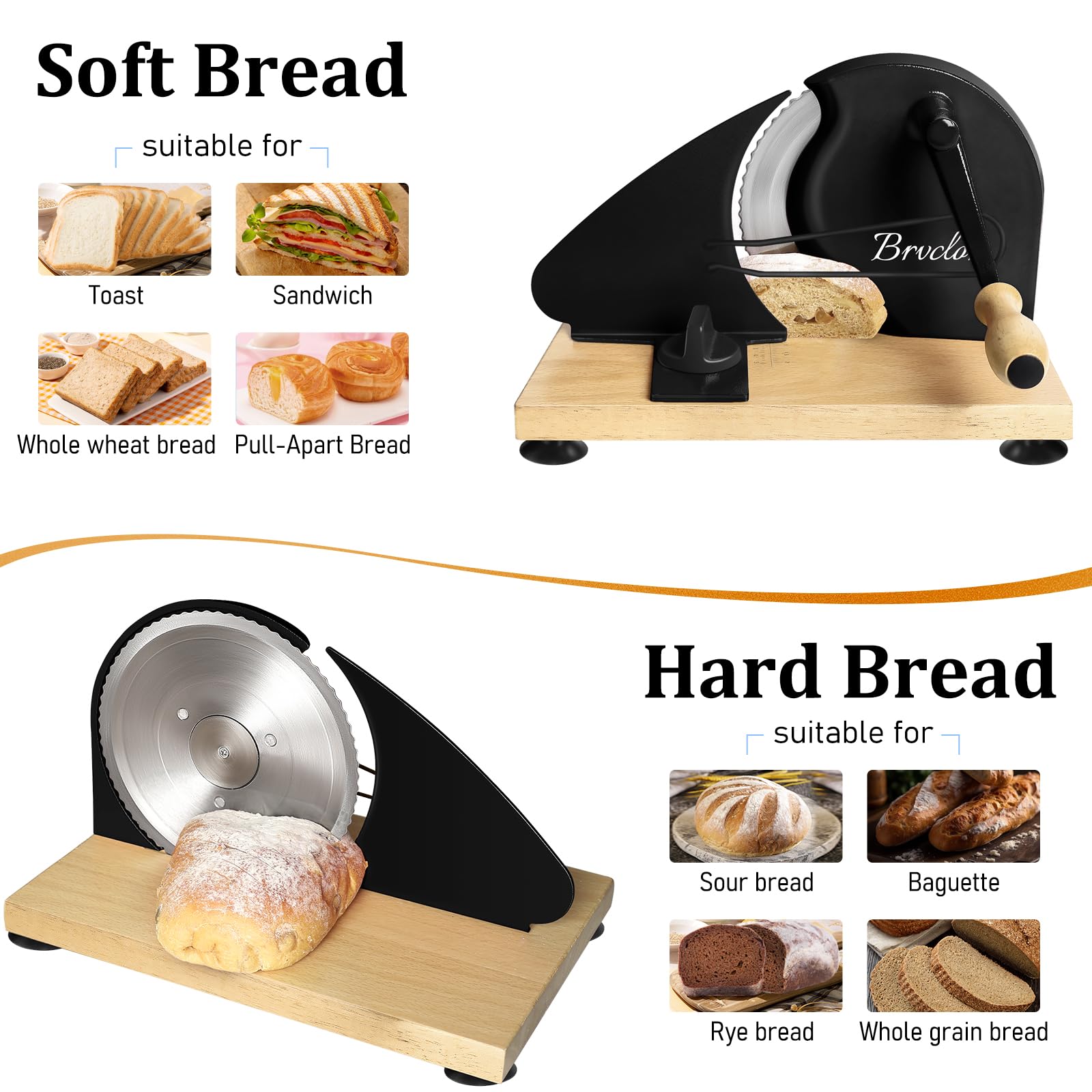- 【Premium Craftsmanship】: The bottom of this hand crank bread slicer is equipped with strong suction cups, which can firmly fix it on the countertop, making the operation smoother and more efficient. With high-quality solid wood material, it is sturdy and durable with a smooth surface, lasting for more than ten years.