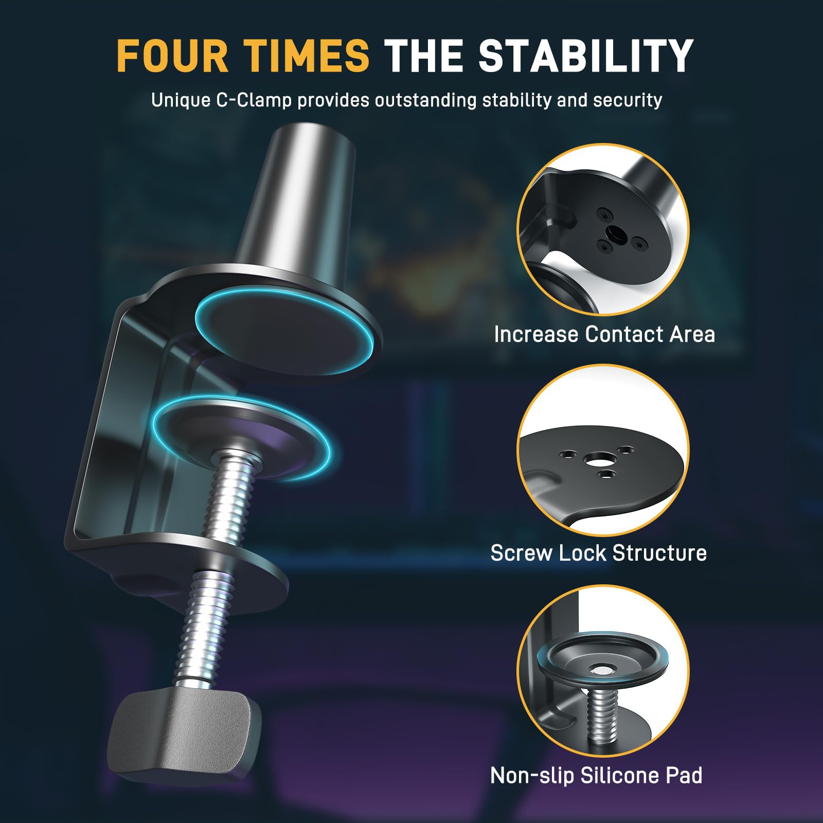 - Simple Installation: Get your workstation set up quickly and easily. The Maono microphone arm can be mounted to your desk (up to 2.2" thick) using the heavy-duty C-clamp or a secure grommet mount. No extra tools are required for installation. Plus, the folding arm design allows for compact storage when the stand is not in use