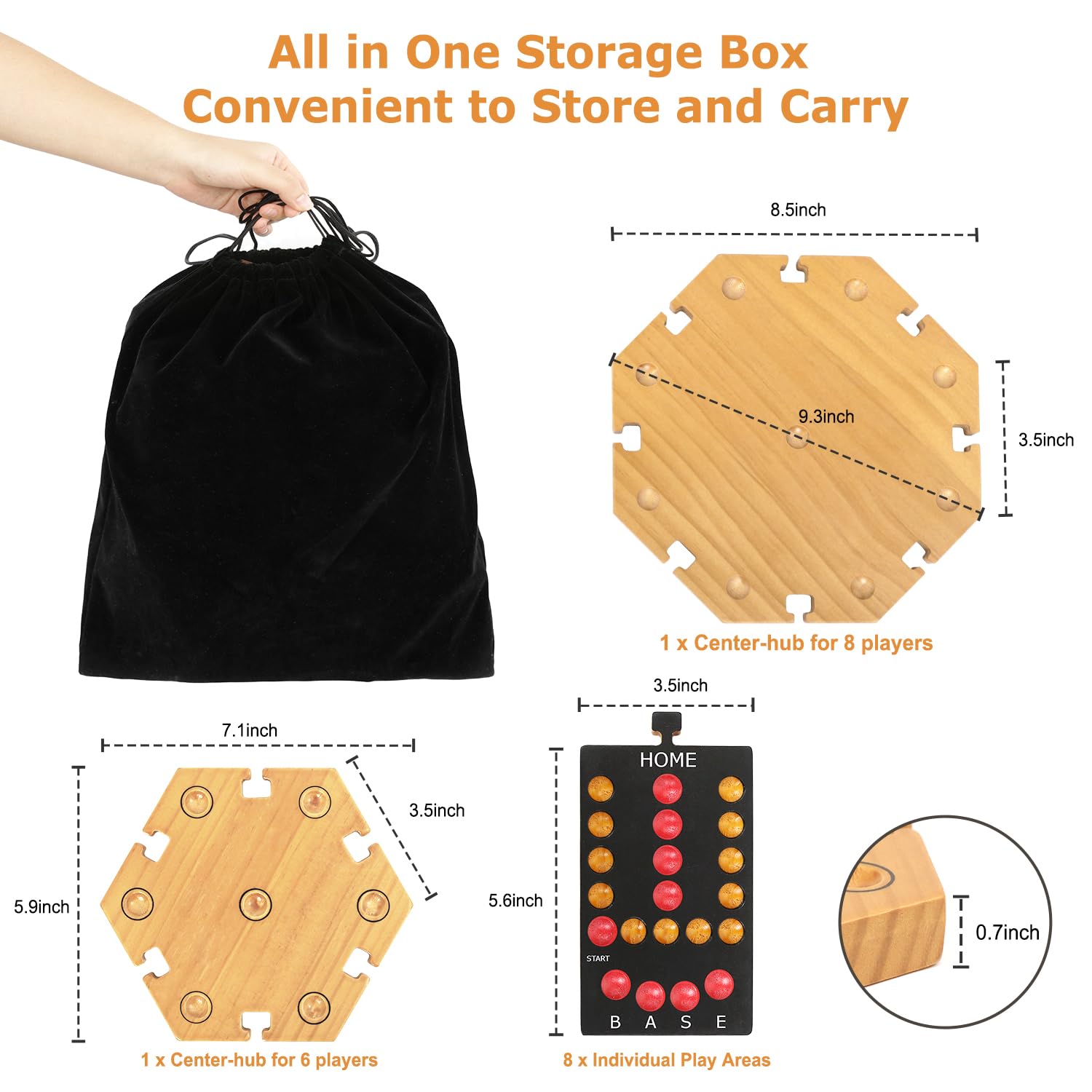 - 【Plusvivo Luxurious Marble Board Game Set】Made from high-quality wood with a 8-color painted design and text instructions for easy navigation from start to finish. The marble board game comes with 32 Marbles 16 Dice, and a velvet storage bag. The wooden game board can be assembled according to the number of players. Comes with detailed instructions so newbies can master the game in minutes and join the fun!