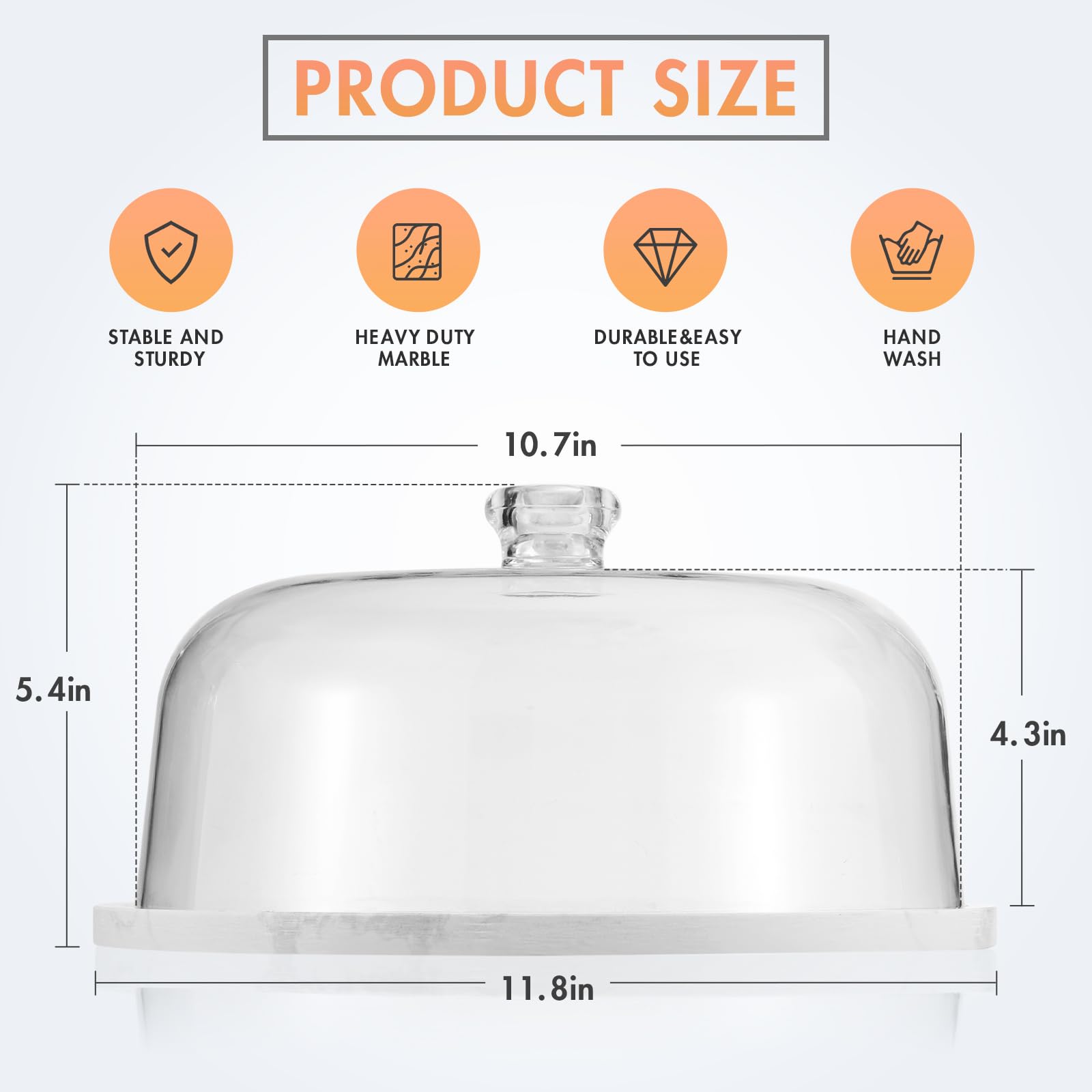 Marble Cake Stand with Dome,11.8in White Marble Dessert Stand with Acrylic Lid Cover,Heavy Duty Stone Serving Display Plate for Cakes,Cheese,Pastry,Stone Platter for Birthday/Kitchen/Party/Wedding