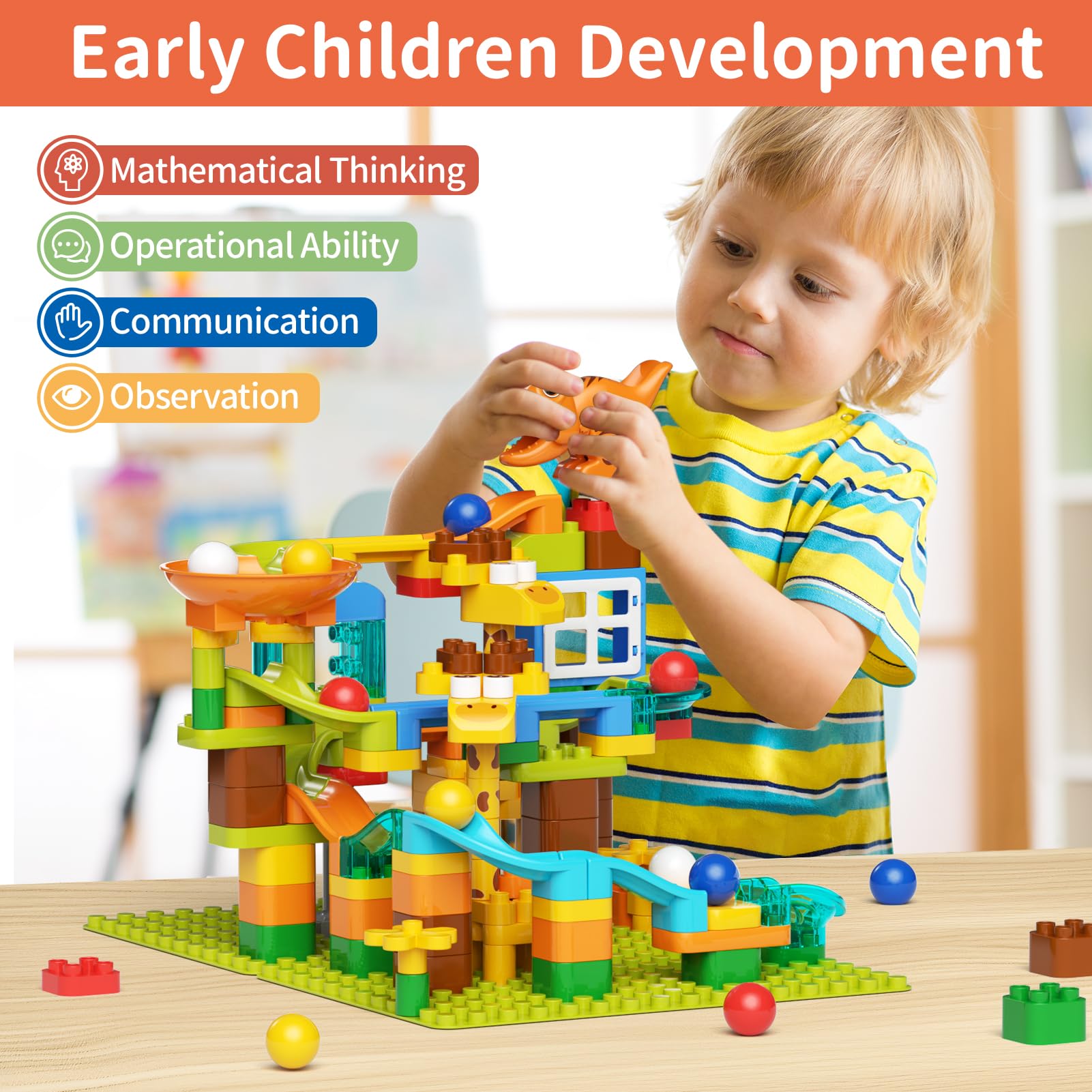 Marble Run for Kids Ages 4-8 145 PCS Dinosaur Giraffe Building Blocks with 10 Marbles Slide Dino Smooth Edges Design Works with Large Brick Toys STEM Track Toys Creative Gift for Boys Girls