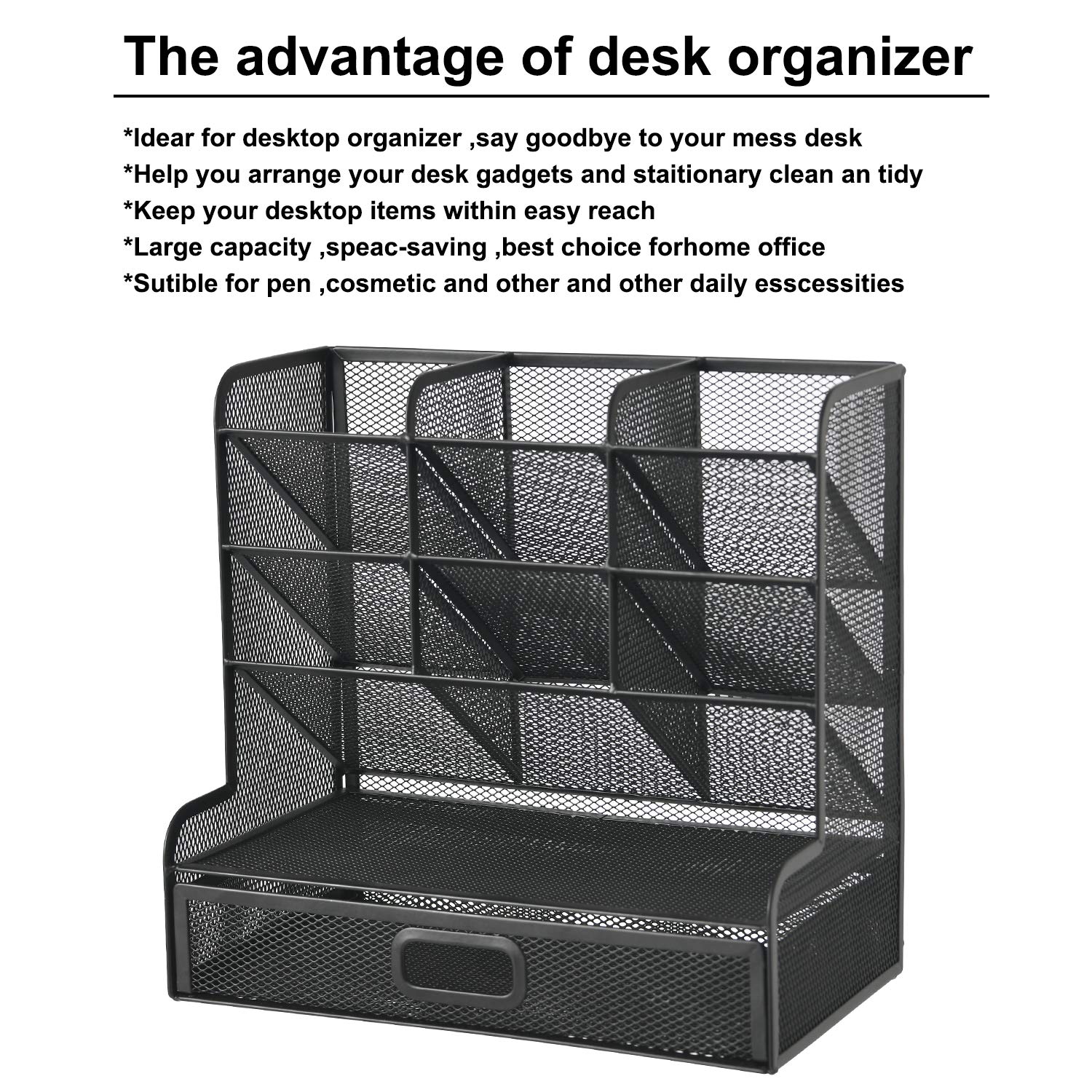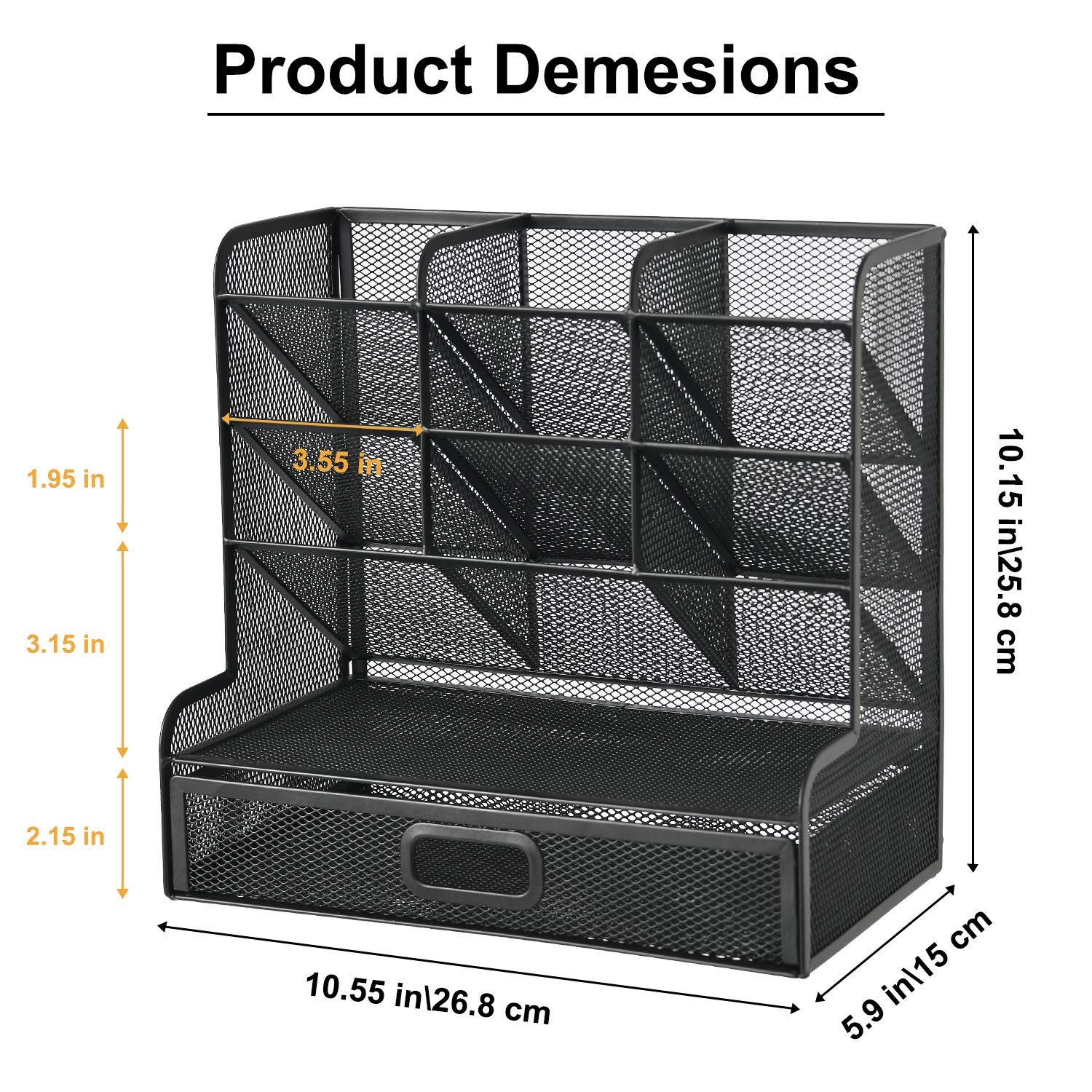 - âď¸ăSTURDY AND DURABLEă: The Desk Storage is made of high quality metal mesh and built with non-skid feet to make it incredibly stable ,which is not easy to get rusty and thereby, keeping the pen holder brand new all the time.The extremely smooth edges will not hurt your things or yourself.for meeting all your demands for home and office using.